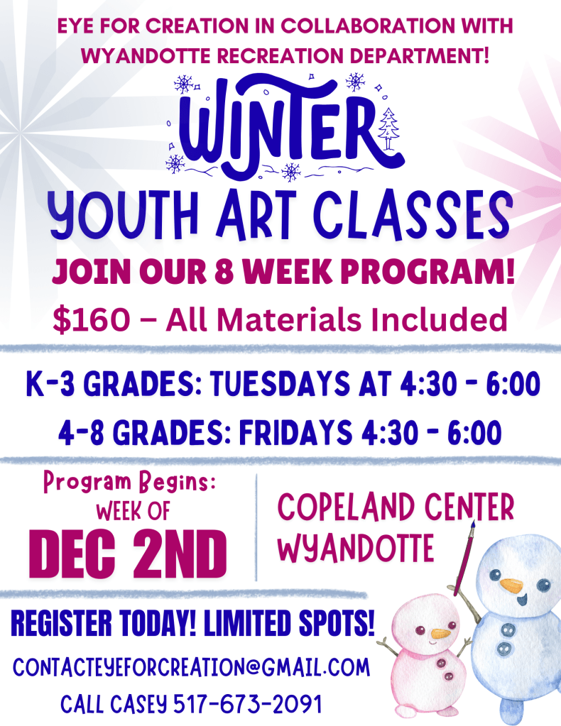✨ Eye for Creation is excited to announce our Youth Art Classes! ✨ From Kindergarten through High School, our programs focus on nurturing each student’s creativity while building skills and confidence along the way.